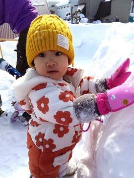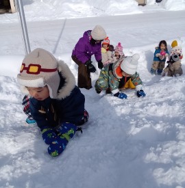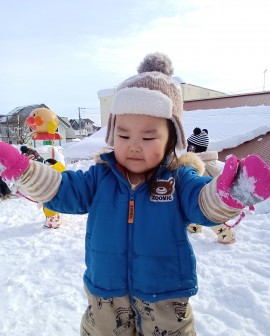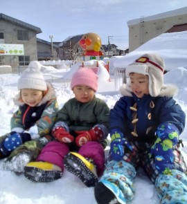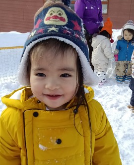 北星おおぞら認定こども園 今日のもも組の様子🍑 2025年2月18日(火) 雪あそびでは、高い雪山に頑張って登りました!頂上でアンパンマンをバックにみんなで「ハイ、チーズ!」とってもいいお顔ですね♪ もどる
