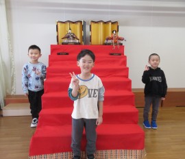 ひな人形の飾りつけをしました!