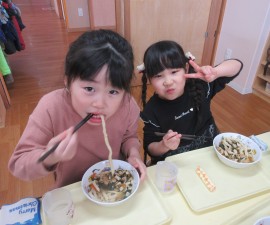 クッキングでは、うどん作りをしましたよ!