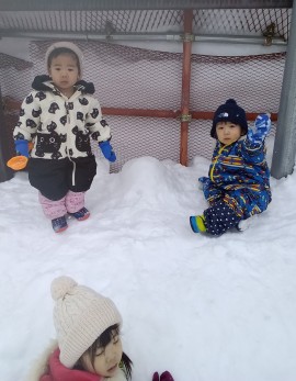 雪遊びの様子。 |