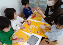 りす組→豆まき会の豆作りの様子。 |