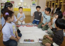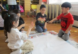 グループ制作『おみせやさん』では、グループでおみせを考え、みんなで相談しながら描きましたよ!