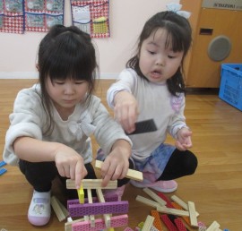 カプラ積み大会は、友だちと協力しながら高く積み上げることを楽しみましたよ♪