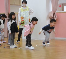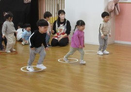 北星おおぞら認定こども園 忍者ナイン(ばなな・ぶどう・めろん組) 2025年4月9日(水) 今日は今年度に入って初めての忍者ナインがありました!ばなな組さんにとっては初めての忍者ナインで、緊張している様子はありましたが、最後まで楽しんで参加しましたよ☺来週も楽しみだね♪ もどる