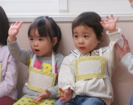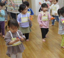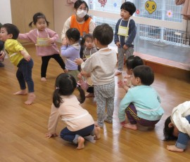 北星おおぞら認定こども園 リトミック教室(もも・みかん組) 2025年4月16日(水) 今日は今年度に入って初めてのリトミック教室がありました!もも組さんは初めてでしたが、少しずつ慣れて笑顔が見られるようになりましたよ☺みかん組さんも、楽器を鳴らしたり音楽に合わせて踊ったりと楽しんでいました♪次も楽しみだね✨ もどる