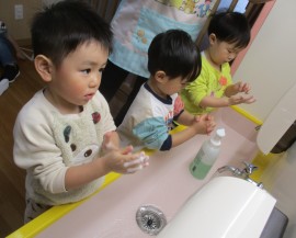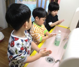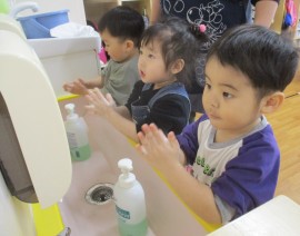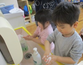 北星おおぞら認定こども園 手洗いうがい指導(ばなな) 2025年4月16日(水) ばなな組さんが手洗い・うがい指導をしてもらいました。手洗いとうがいの仕方のお話をよく聞いてから、手順を見て練習をしましたよ!上手に洗えてピカピカになったね🤗✨ もどる