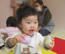 パタパタマットとたまご型のマラカスで遊びました。