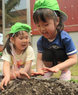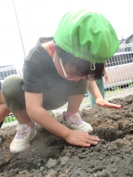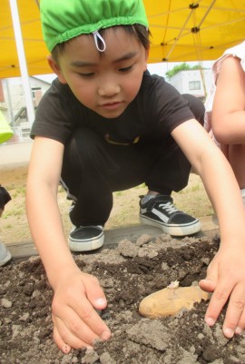 今日は、めろん組さんがじゃがいもを植えました🥔