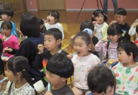 北星おおぞら認定こども園 よい歯の教室 2025年6月4日(水) 今日は良い歯の教室がありました。看護師の職員から正しい歯磨きの仕方やなぜ虫歯になってしまうのかを教えてもらいました。3歳以上児さんは〇×クイズと、歯磨きも行いましたよ!お家でもしっかり歯磨きをして大切な歯を守りましょうね🪥🫧 もどる