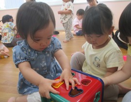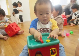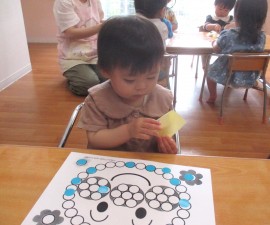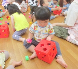 シール遊びと型はめブロックで遊びましたよ!