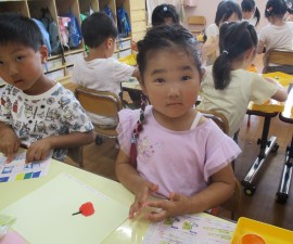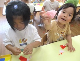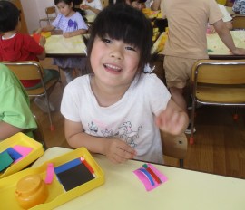 北星おおぞら認定こども園 今日のぶどう組の様子🍇 2025年6月25日(水) 自由制作「ちぎって貼って」に挑戦です。作りたいものを考えながら折り紙をちぎり形を作っていきましたよ。その後は椅子取りゲームをして、お友だちと一緒に楽しみました。 もどる