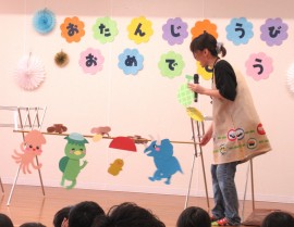 北星おおぞら認定こども園 7月お誕生会 2025年7月16日(水) 今日は7月生まれさんのお誕生会がありました🎂先月のお誕生会に参加できなかった子も合わせて、3歳未満児の会で6人・3歳以上児の会で8人がみんなにお祝いをしてもらいましたよ✨出し物は、めろん組さんがマット・鉄棒運動とアルゴリズム体操を披露してくれました☺職員からは『ぶらぶらしりとり』のぶらぶらシアターでしたよ!会食は、メロンパン、鶏肉ピザ風味焼き、野菜スティック、コンソメスープ、すいかでした。 もどる