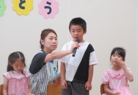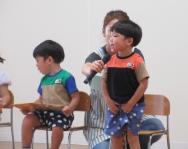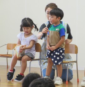 北星おおぞら認定こども園 8月お誕生会 2025年8月22日(金) 今日は8月生まれさんのお誕生会がありました🎂3歳未満児の会で4人・3歳以上児の会で6人がみんなにお祝いをしてもらいました✨職員からの出し物は『ぞうのはなはなぜながい』のエプロンシアターでした!3歳以上児さんの会では、列になって踊る『ジェンカ』を楽しみましたよ♪会食は、マーボーナス丼、中華スープ、すいかでした。 もどる