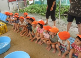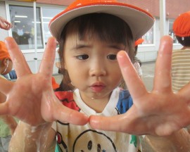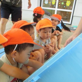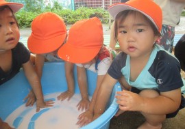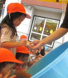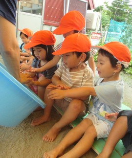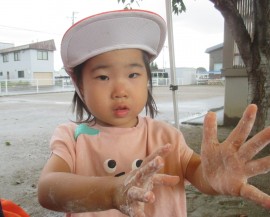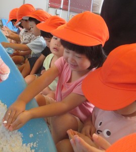 サラサラの粉が水と混ざって変化していく様子に興味津々でしたよ♪