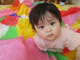 北星おおぞら認定こども園 今日のいちご組の様子🍓 2025年9月11日(木) カラーポリ袋を使って遊びました。色鮮やかなビニールの色に興味を示し、手に触れたりビニールの中に入ってお友だちと顔を見合わせ楽しんでいましたよ。 もどる