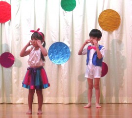 北星おおぞら認定こども園 めろん組お遊戯会 2025年10月10日(金) 今日は、めろん組さんのこども園最後のお遊戯会でした☆たくさんの練習を重ね、楽しみに待っていた本番。手話歌やお遊戯、劇をみんな良い表情で堂々と発表することができました✨今日で全クラスのお遊戯会が終了しました。保護者の皆様にはお忙しい中見に来て頂き、ありがとうございました。 もどる