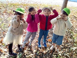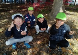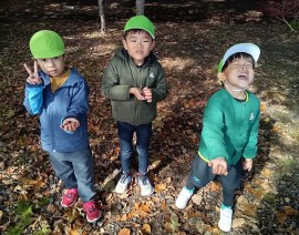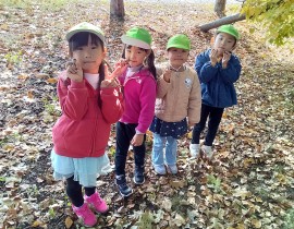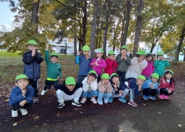 北の散歩道の築山までお散歩に行き、どんぐり拾いを楽しみました。
