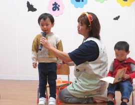 北星おおぞら認定こども園 10月お誕生会 2025年10月22日(水) 今日は10月生まれさんのお誕生会がありました🎂先月のお誕生会に参加できなかった子も合わせて、3歳未満児の会で3人・3歳以上児の会で5人がみんなにお祝いをしてもらいましたよ✨職員からの出し物は『ハロウィン』のスケッチブックシアターとスケッチブッククイズでした☺会食は、バターロール、照り焼きチキン、コールスローサラダ、コンソメスープ、バナナでした。おやつは、おばけドーナッツでしたよ🍩 もどる