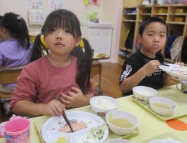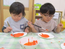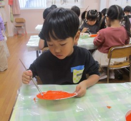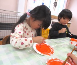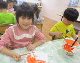 北星おおぞら認定こども園 今日のぶどう組の様子🍇 2025年10月21日(火) ハロウィン制作をしましたよ。4月から絵の具制作を楽しんできたので、とっても塗ることが上手になりましたよ!お箸も頑張っています!! もどる