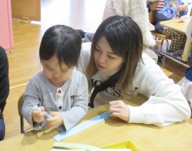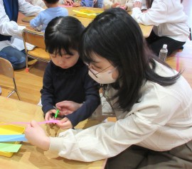 北星おおぞら認定こども園 みかん組親子レク 2025年11月28日(金) 今日はみかん組さんの親子レクがありました。お父さん・お母さんと一緒にはさみを使ってくるくる金魚の制作とふれあい遊びをおこないました☺上から投げてもらい、くるくると回りながら落ちてくるのを一生懸命キャッチしていたみかん組さんです♪ふれあい遊びでも、みんな良い笑顔でしたよ☺️お忙しい中、参加して頂きありがとうございました。 もどる