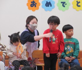 北星おおぞら認定こども園 12月お誕生会 2025年12月5日(金) 今日は12月生まれさんのお誕生会がありました🎂先月のお誕生会に参加できなかった子も合わせて、3歳未満児の会で6人・3歳以上児の会で8人がみんなにお祝いをしてもらいましたよ✨出し物は、みかん組さんがクリスマスソングの合わせて楽器演奏を披露してくれました☺職員からは、はたらくくるまのパネルシアターと3歳以上児さんと一緒にちょっとだけ体操をしましたよ☺会食は、旭川醤油ラーメン、シューマイ、バナナでした。 もどる