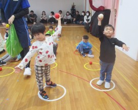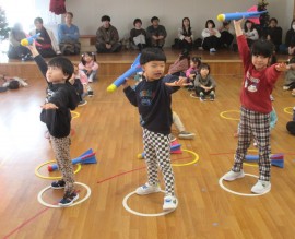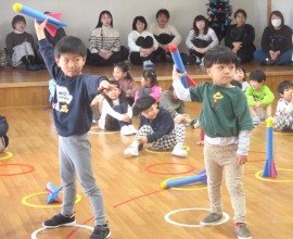 北星おおぞら認定こども園 ぶどう組保育参観日 2025年12月10日(水) 今日は、ぶどう組さんの保育参観日がありました。忍者ナインの様子をお父さん・お母さんに見て頂きましたよ!お忙しい中見に来て頂き、ありがとうございました☺ もどる