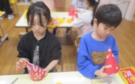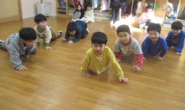 体幹遊びでクモ歩き・オットセイ・ブリッジをしてから、クリスマス制作を行いました。