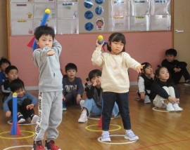 北星おおぞら認定こども園 めろん組保育参観日 2025年12月18日(木) 今日はめろん組さんの保育参観日がありました。忍者ナインの様子をお父さん・お母さんに見て頂きましたよ!終始ニコニコなめろん組さんでした♪お忙しい中見に来て頂き、ありがとうございました☺ もどる