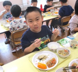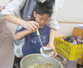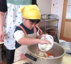 北星おおぞら認定こども園 ぶどう組クッキング 2026年2月4日(水) 今日は、ぶどう組さんが豚汁作りを行いました!じゃがいもやにんじんなどの具材を包丁で切る、炒めるなどの工程をみんなで協力して、おいしい豚汁ができました✨お家でもお手伝いしているよとお話していたぶどう組さん。楽しみながらクッキングしていましたよ☺️ もどる
