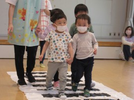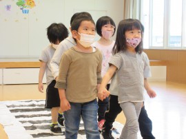 永山おおぞら認定こども園 交通安全教室 2022年5月10日(火) 今日は交通安全教室がありました❗交通ルールの⭕❌クイズ❓をして、みんなで横断歩道🚥の渡り方を確認しました😊みんな練習したとおり、ライトで照らす信号機🚦が青になると右・左・右・後ろと確認してから横断歩道🚥を上手に渡ることができました👏年長のひまわり組さんには、赤から青に変わる信号だけでなく、チカチカする青信号🚦の状況👀にもなりましたが、みんな各々で判断して正しく行動することができました👌 もどる