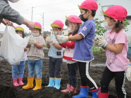 副園長先生から、じゃがいも🥔の植え方を教えてもらい