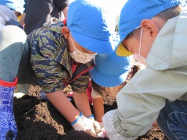 軍手を履いて腕まくり💪をし、合図をすると、みんな凄い勢いで、じゃがいも🥔を探しだしました😲