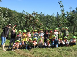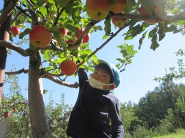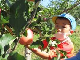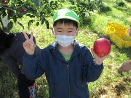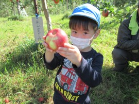 永山おおぞら認定こども園 🍎 りんご狩り 🍎 2022年9月26日(月) 今日は、ゆり・ひまわり組のみんなで南果樹園にりんご狩り🍎に行きました❗みんな赤くて大きいりんご🍎を探して見つけると果樹園の方から教わった通りに、手でクルクルとりんご🍎を回して上手に採ることができていましたよ👍高い所に実っているりんご🍎も、先生に抱っこしてもらったり脚立に登って👀採りました😊みんなたくさん採ることができ嬉しそうでした😄 もどる