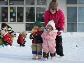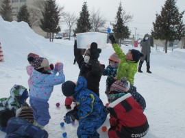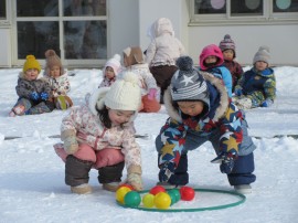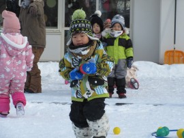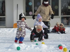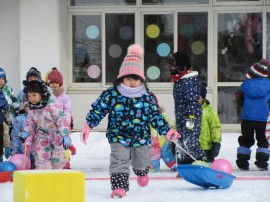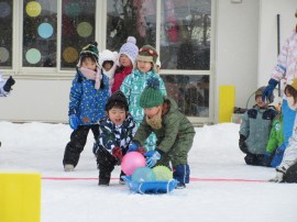 ゆり・ひまわり組🌻さんは、ボールを3個そりに乗せて運ぶ