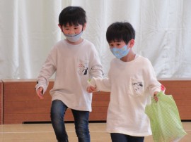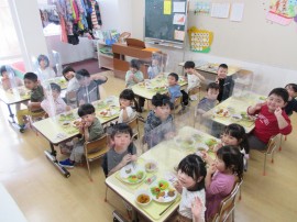 最後は、ひまわり組🌻さんに、ちゅうりっぷ・たんぽぽ・ゆり組さんからの手作りのプレゼント🎁を1人ずつステージで渡し、グループに分かれて給食をお部屋で食べました✨