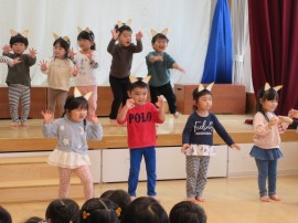 各クラスのひまわり組🌻さんへの出し物では、きつねダンス🦊や楽器、歌🎶を披露し、ひまわり組🌻さんから、『かわいい💗』『上手だった👍』と言ってもらって喜んでいましたよ😊