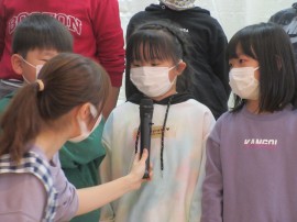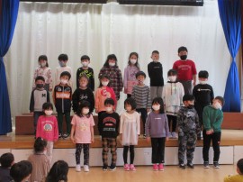 ひまわり組🌻さんがステージに上がり一人ずつ『こども園で楽しかったこと』を発表してくれました👏