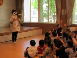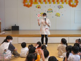 永山おおぞら認定こども園 🚦 交通安全教室 🚦 2023年5月16日(火) 今日は交通安全教室がありました❗交通ルールについての⭕❌クイズ❓をしてから、みんなで横断歩道🚥の渡り方の練習をしました😊ライトで照らす信号機🚦をよく見て、青になると練習した通り『右・左・右・後ろ・前』と周りを確認してから横断歩道を渡ることが、みんなできていましたよ👏これからは、お散歩🚶などで出掛けることが増えてくるので、しっかりと交通安全を守って、楽しくお出掛けできるようしていきたいと思います。 もどる