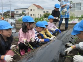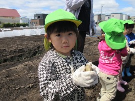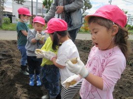 副園長先生から、じゃがいも🥔の植え方を教えてもらった通りに、種芋の芽🌱をお日様🌞に向けて土の中に入れ、優しく土をかぶせて水をあげたりと、丁寧に取り組んでましたよ👏