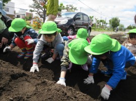 みんなで菜園に行き『じゃがいも🥔』を植えてきました❗