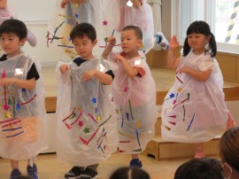 出し物では、ゆり組のみんなが、自分達で作ったキラキラ✨のお化け👻の衣装を着て、お遊戯『異世界混合大舞踏会』のダンス🎵を披露してくれました。