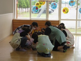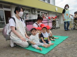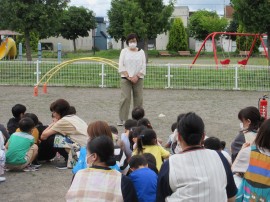 永山おおぞら認定こども園 🧯 避難訓練(地震想定訓練) 🧯 2023年7月18日(火) 今日は地震を想定した避難訓練を行ないました❗地震発生のアナウンス📢が流れると、みんなしっかりと自分の体を守る行動(体を丸めてダンゴムシの姿勢)をとり、次の指示があるまで、おしゃべりもせず🤐上手に待てていましたよ👌その後、落下物を想定したブロック🧱やおもちゃ🧸を避けて園庭への避難もスムーズにできていました👍園長先生のお話や消火器🧯の使い方などのお話もしっかり聞いて最後までみんな上手にできましたよ💯 もどる