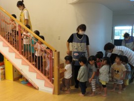 永山おおぞら認定こども園 🌀 避難訓練(水害想定訓練) 🌀 2023年9月19日(火) 今日は水害を想定した避難訓練を行ないました❗水害🌀発生のアナウンス📢が流れると、みんなお話をしないで2階のお部屋や屋上に避難することができました👏分園のちいさいおともだちも、本園に避難し上手に階段を上がって避難しました👍園長先生のお話もしっかり聞いて、最後までみんな上手にできてましたよ💯 もどる