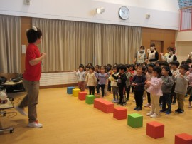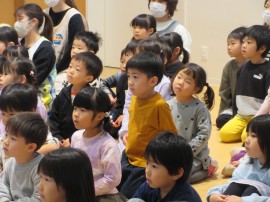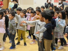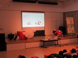 永山おおぞら認定こども園 🌟 えほんわくわくキャラバン 🌟 2023年12月4日(月) 今日は、認定こども園にトドックが来てくれました❗お兄さんとトドックと一緒にダンス🎵をしたり、プロジェクターを使った絵本📕の読み聞かせや、スクリーンの映像に合わせて、カラダを動かす🤸♂️ゲームをしたりと、とってもこどもたち楽しんでいましたよ😊トドックからこども園に絵本📕のプレゼント🎁をもらい、最後に記念撮影📸をしました。みんな笑顔いっぱいで大喜びの一日でした😄 もどる