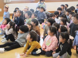職員の真似をして『ゴンドラ ゴンドラ』や『たけし~ たけし~』と一緒に声を揃えて出して『へんしん』を楽しんで見ていましたよ😄
