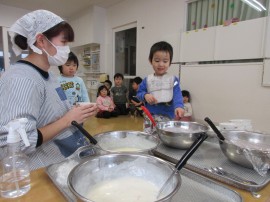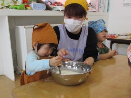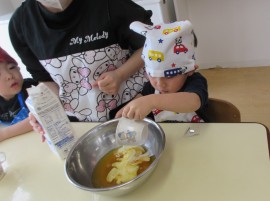 『いいにお~い』『フワフワ~ってなった』など、とってもうれしそうにのぞきこんで作っていました😊
