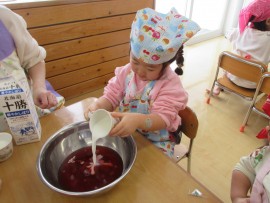今日はちゅうりっぷ組のみんなでフルーチェ🍨を作りました❗