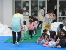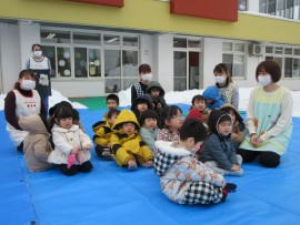冬の間⛄はいつもお遊戯室に避難していましたが、今回は園庭に避難しました。