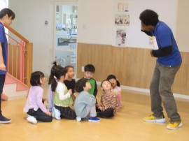 KidsDuo旭川の先生と挨拶や音楽に合わせて歌をうたったり、ゲームをしたりしながら英語に触れ楽しみました😊