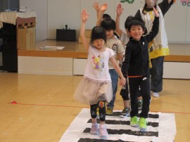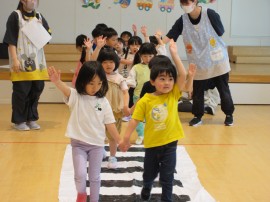 保育者より交通ルールの紙芝居があり、その後に